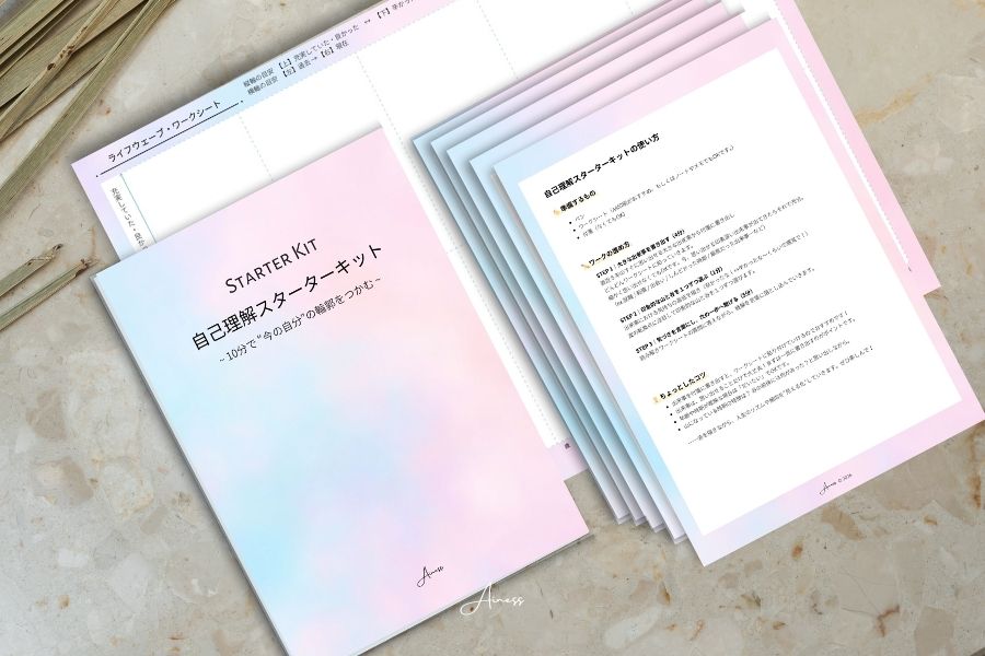 かつて私も、自分の強みが見えず、漠然とした不安の中にいました。そんな時、人生を可視化してみると「すべての経験が今に繋がっているんだな…」と気づくことができたという経験があります。その感動をぜひ体験してほしい。そんな想いでこの【自己理解スターターキット】を作りました。人生の流れと、自分らしさの輪郭をつかむための2ワークをまとめています。